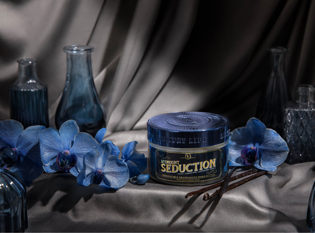 Where luxury meets skincare, experience irresistibly fragranced butters that turn heads, commanding attention.